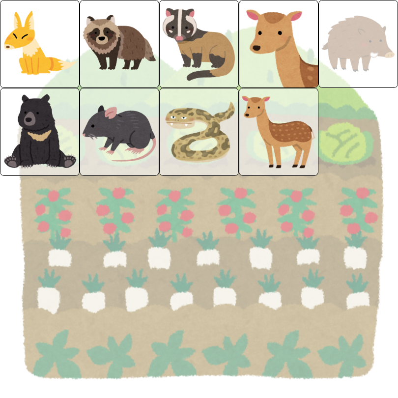 タイル内の画像の位置や拡大率、透過度はそれぞれのタイルで調整できます(上の画像ではシカをアップに、イノシシは透過処理してます)。