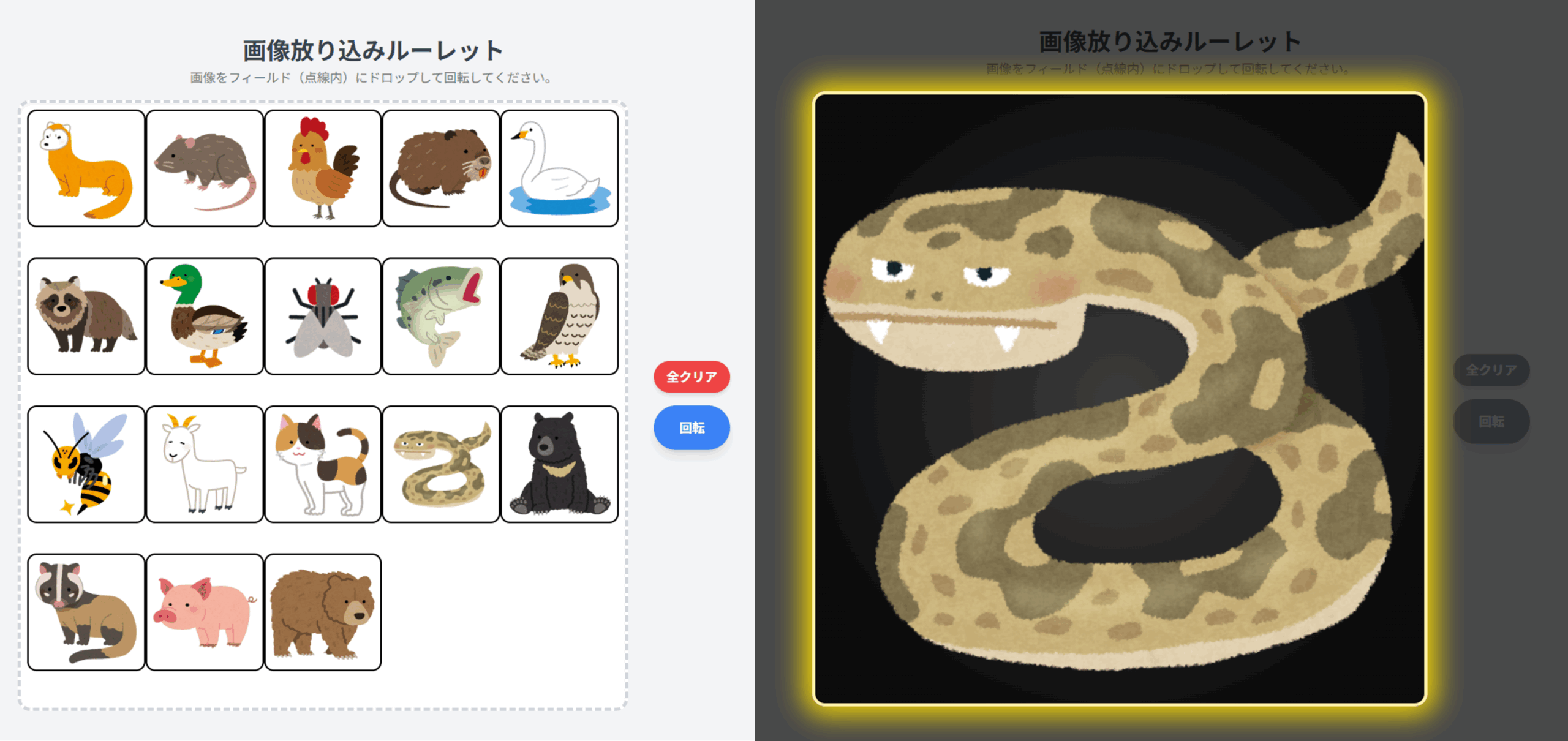 画像を放り込んで回転を押すだけのルーレット。